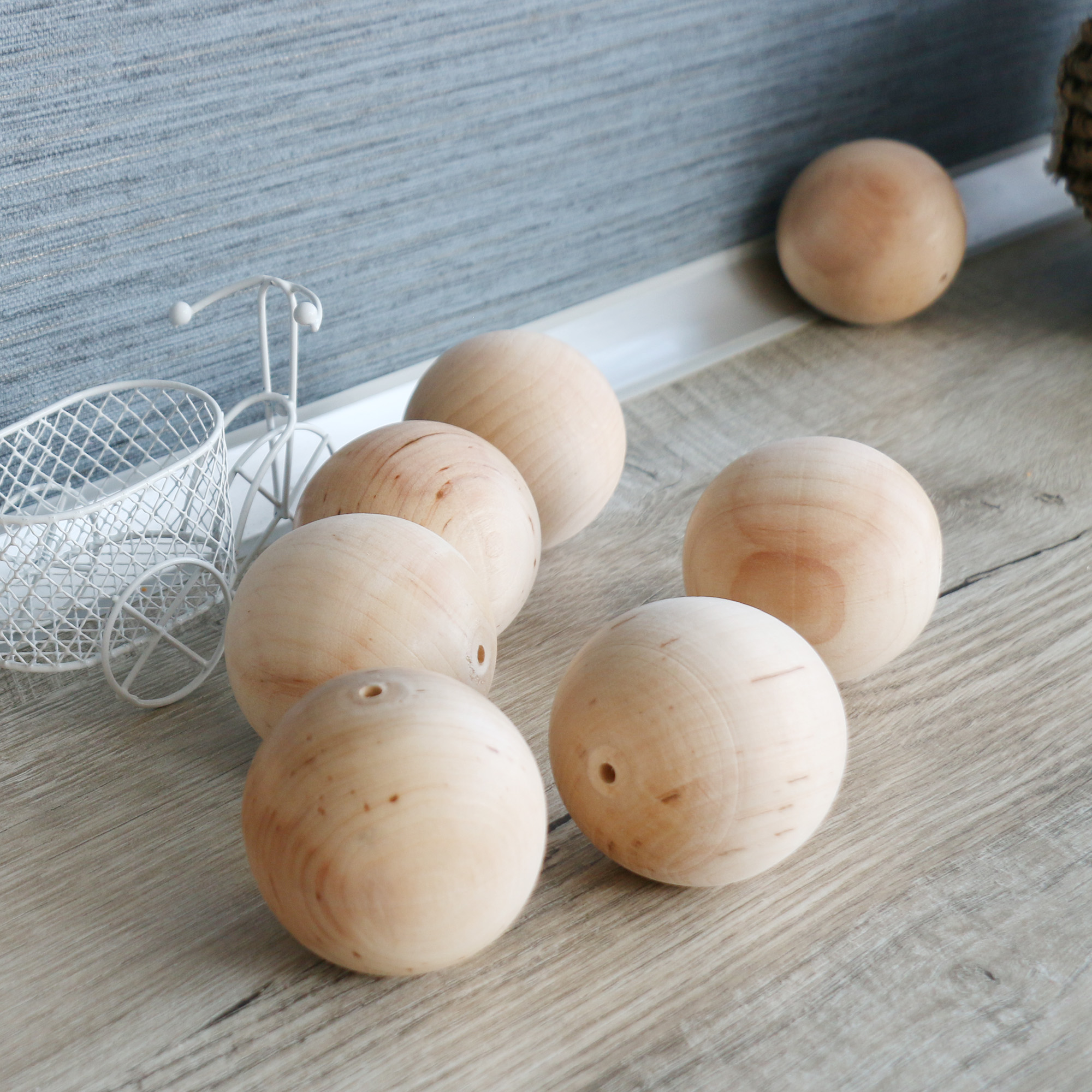 Set of 10 Wooden Balls 60 mm with Hole 4 mm - Craft Blanks for DIY Projects