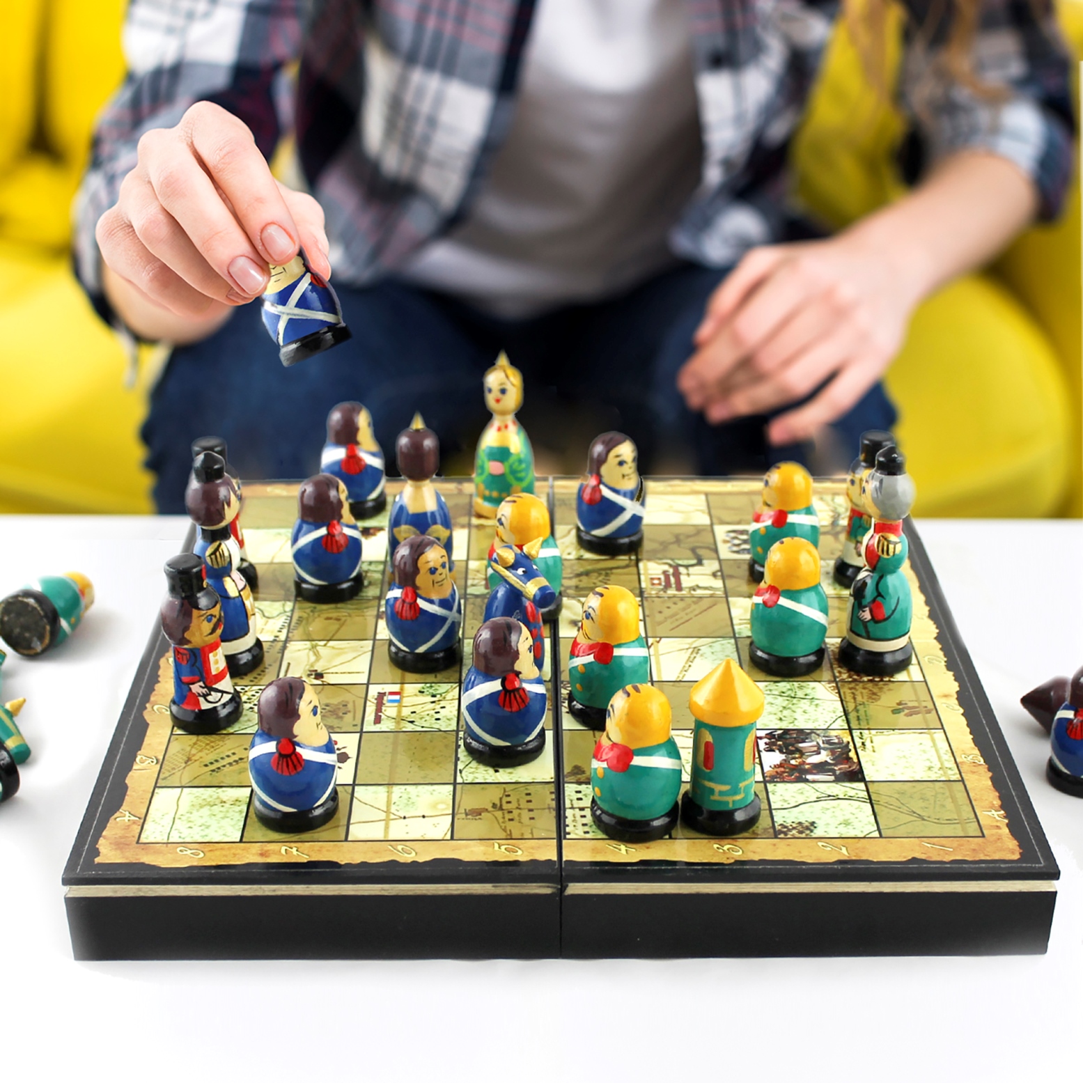 Battle Borodino 1812 Themed Chess Set - Handmade Souvenir Chess Pieces Russian Nesting Dolls
