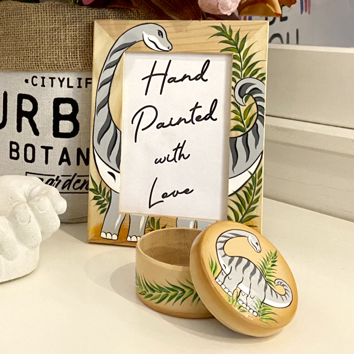 Wooden Gift Set Photo Frame and Box with Dinosaur Design