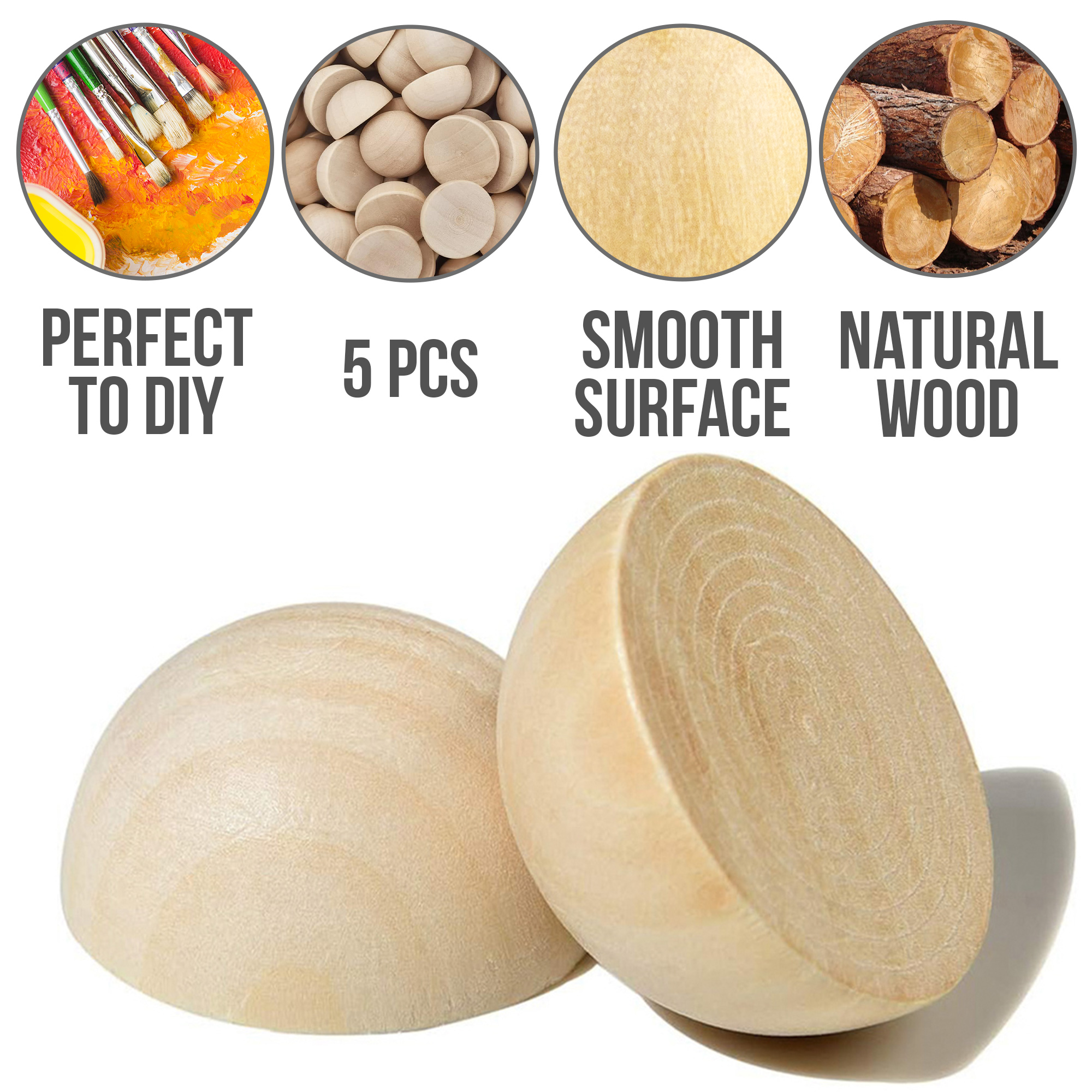 Wooden Hemisphere 2.17 in – Solid Wood Craft Blank for DIY